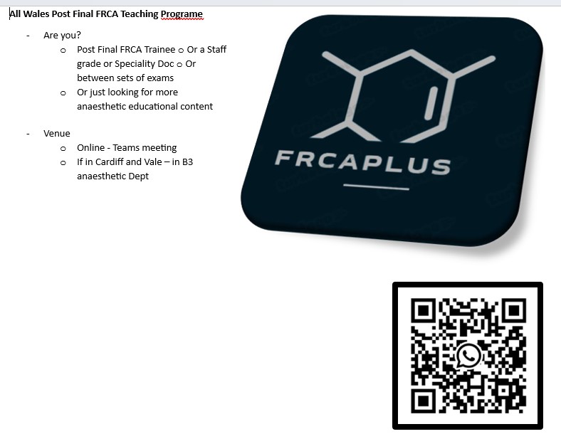 FRCA Plus - All Wales Post-Final Teaching